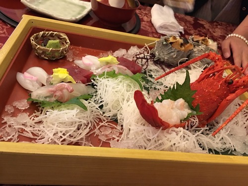 定番の伊勢エビや松阪牛を頂きました。